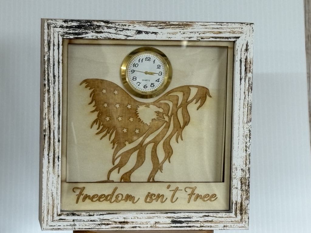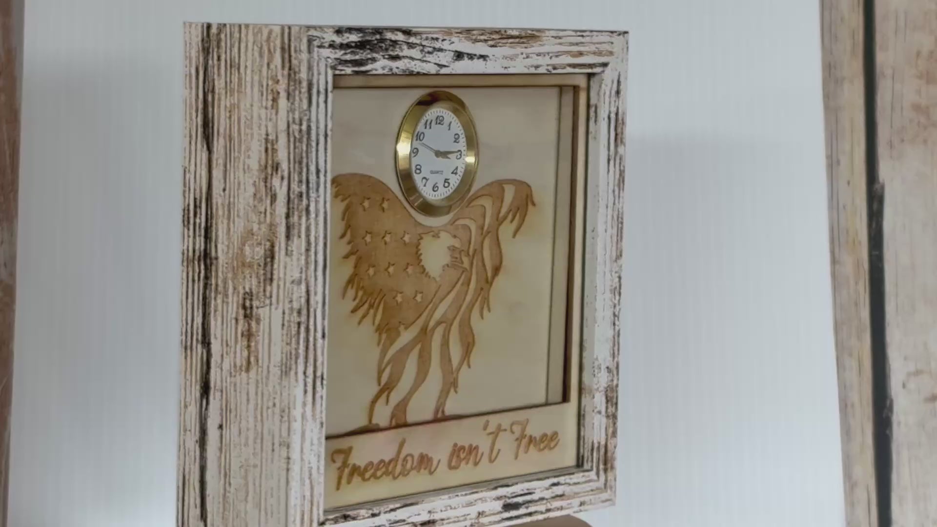 This shadow box with an integrated clock is designed as a commemorative piece.