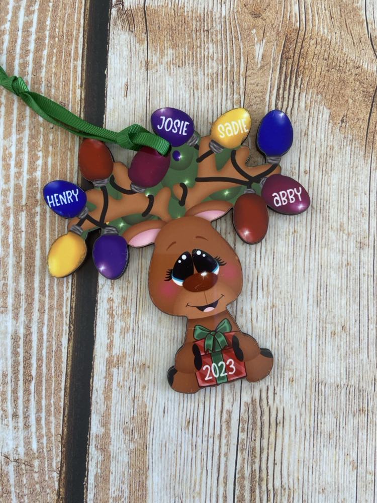 Reindeer Ornaments - Names on the Lights in the Antlers